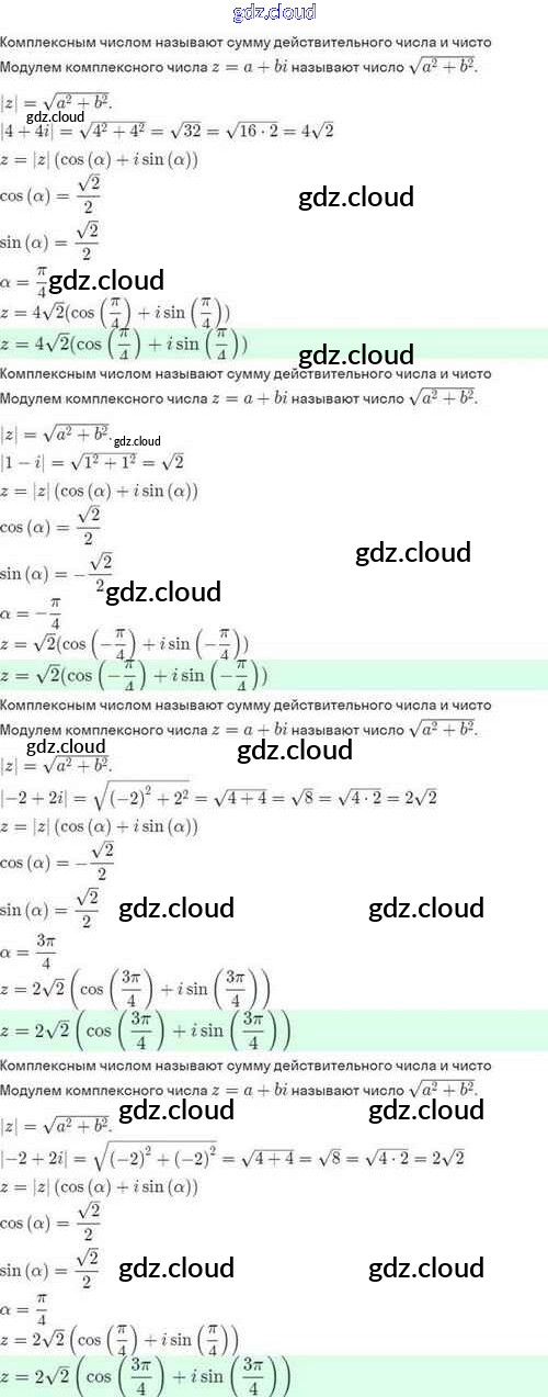 Ответы. §34. Тригонометрическая формула записи комплексного числа по Алгебре 10 класс Задачник Мордкович Базовый и углубленный уровень Мнемозина
