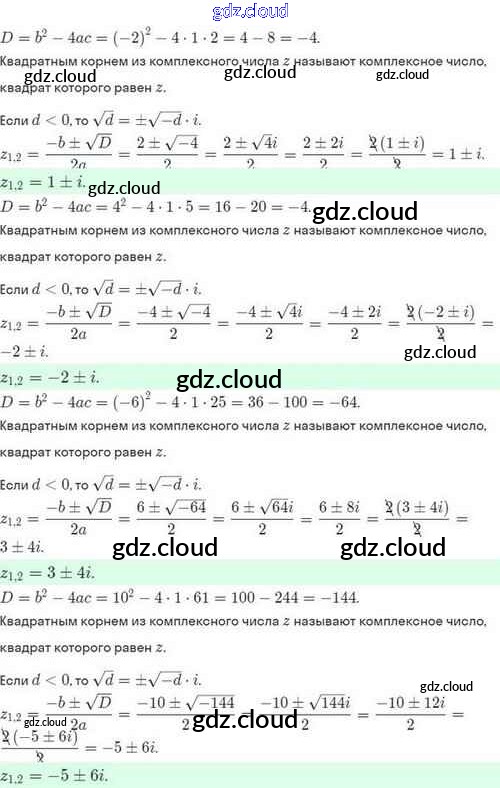 Ответы. §35. Комплексные числа и квадратные уравнения по Алгебре 10 класс Задачник Мордкович Базовый и углубленный уровень Мнемозина
