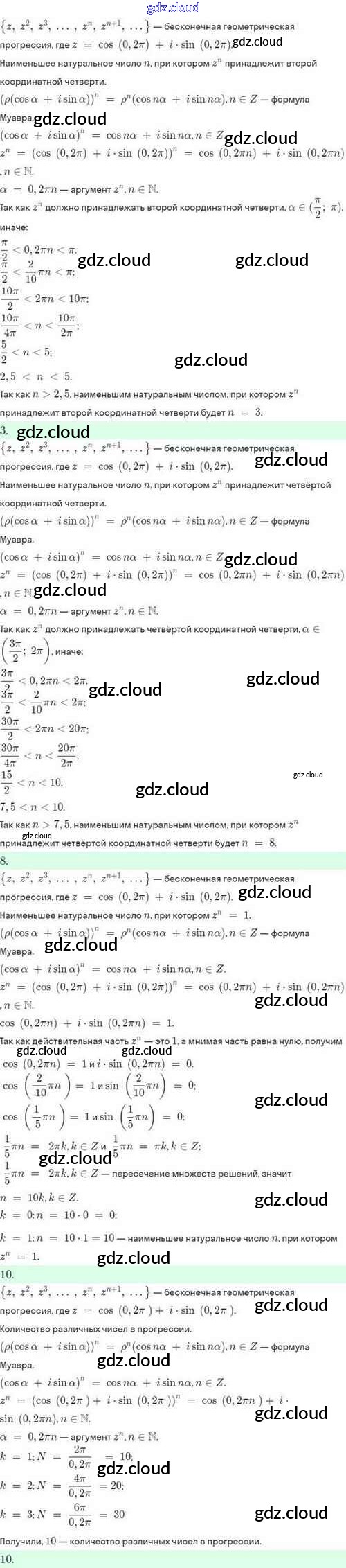 Ответы. §36. Возведение комплексного числа в степень, извлечение кубического корня из комплексного числа по Алгебре 10 класс Задачник Мордкович Базовый и углубленный уровень Мнемозина