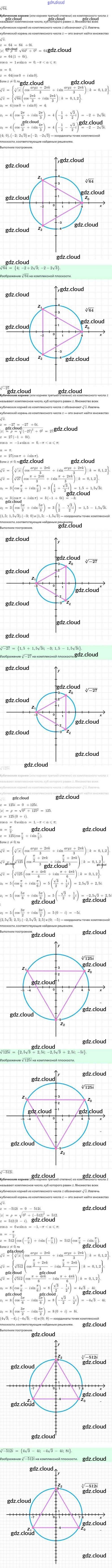 Ответы. §36. Возведение комплексного числа в степень, извлечение кубического корня из комплексного числа по Алгебре 10 класс Задачник Мордкович Базовый и углубленный уровень Мнемозина