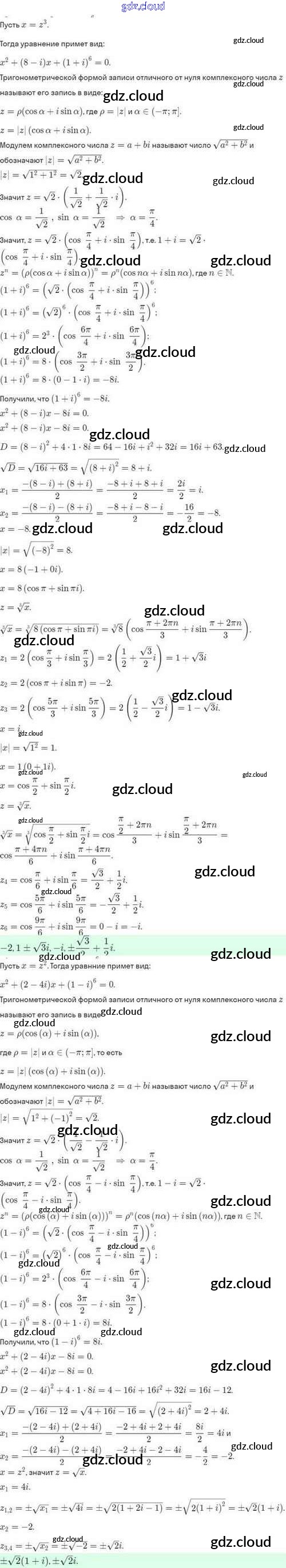 Ответы. §36. Возведение комплексного числа в степень, извлечение кубического корня из комплексного числа по Алгебре 10 класс Задачник Мордкович Базовый и углубленный уровень Мнемозина