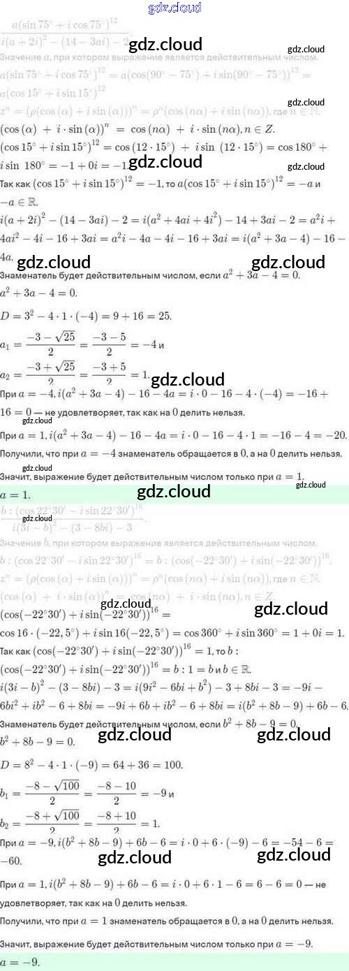 Ответы. §36. Возведение комплексного числа в степень, извлечение кубического корня из комплексного числа по Алгебре 10 класс Задачник Мордкович Базовый и углубленный уровень Мнемозина