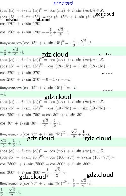 Ответы. §36. Возведение комплексного числа в степень, извлечение кубического корня из комплексного числа по Алгебре 10 класс Задачник Мордкович Базовый и углубленный уровень Мнемозина