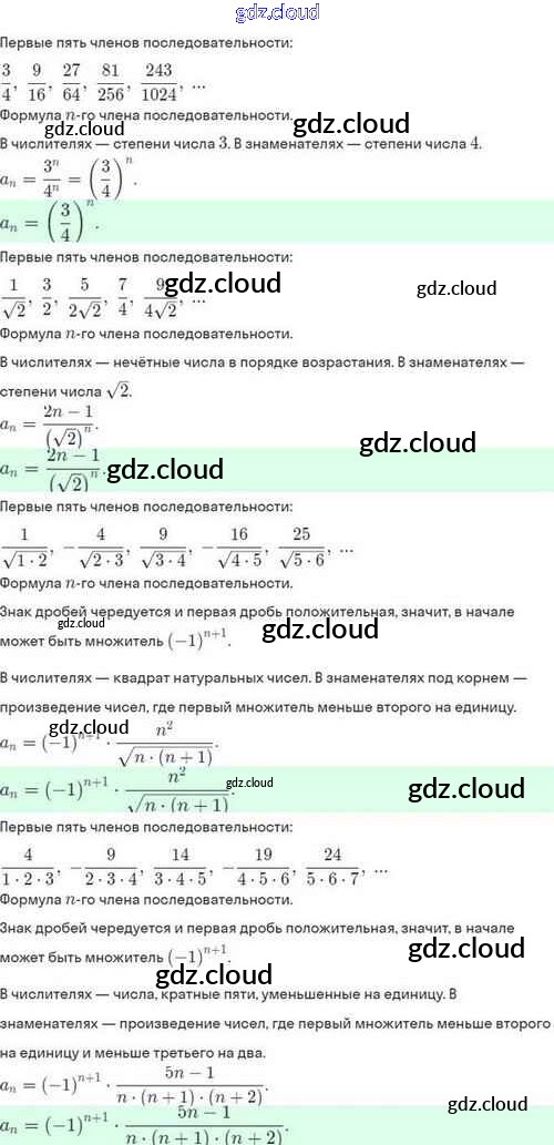 Ответы. §37. Числовые последовательности по Алгебре 10 класс Задачник Мордкович Базовый и углубленный уровень Мнемозина