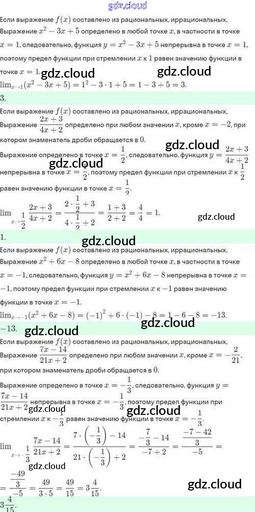 Ответы. §39. Предел функции по Алгебре 10 класс Задачник Мордкович Базовый и углубленный уровень Мнемозина