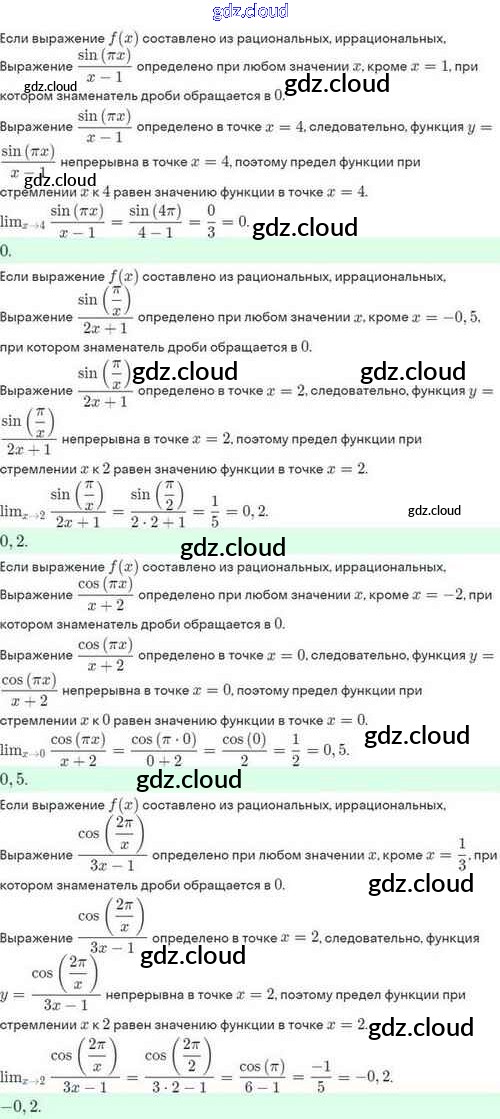 Ответы. §39. Предел функции по Алгебре 10 класс Задачник Мордкович Базовый и углубленный уровень Мнемозина