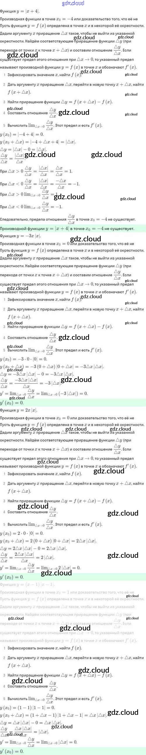 Ответы. §40. Определение производной по Алгебре 10 класс Задачник Мордкович Базовый и углубленный уровень Мнемозина