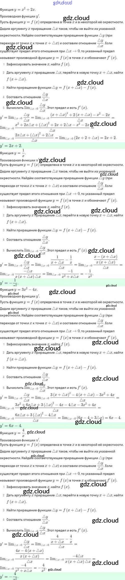Ответы. §40. Определение производной по Алгебре 10 класс Задачник Мордкович Базовый и углубленный уровень Мнемозина