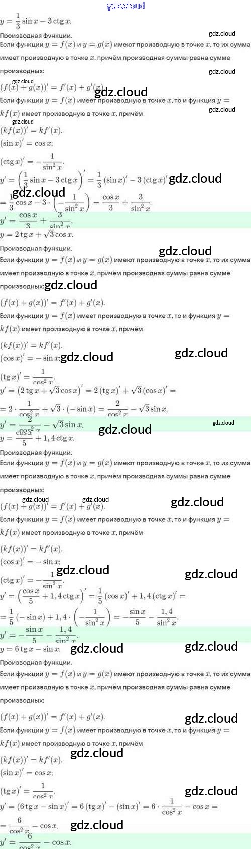 Ответы. §41. Вычисление производных по Алгебре 10 класс Задачник Мордкович Базовый и углубленный уровень Мнемозина