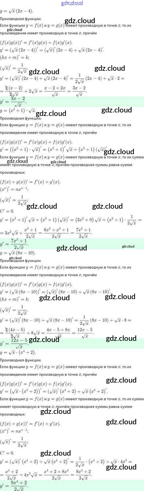 Ответы. §41. Вычисление производных по Алгебре 10 класс Задачник Мордкович Базовый и углубленный уровень Мнемозина