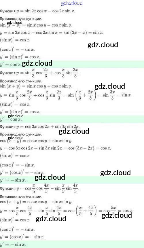 Ответы. §41. Вычисление производных по Алгебре 10 класс Задачник Мордкович Базовый и углубленный уровень Мнемозина