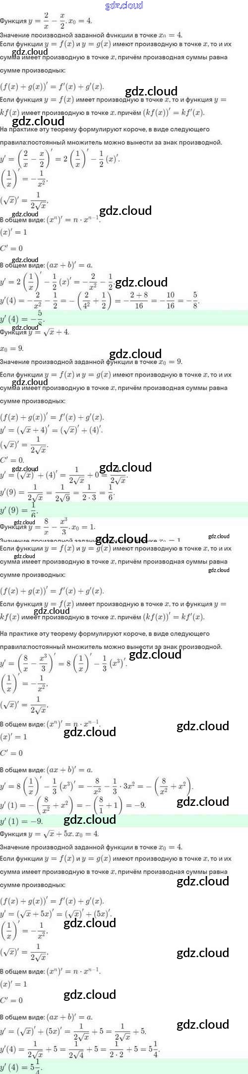 Ответы. §41. Вычисление производных по Алгебре 10 класс Задачник Мордкович Базовый и углубленный уровень Мнемозина