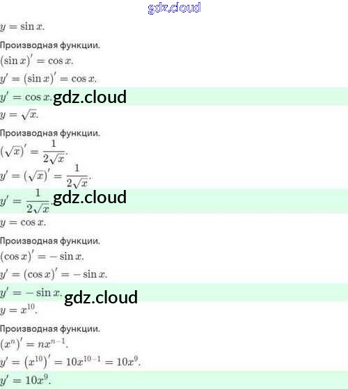 Ответы. §41. Вычисление производных по Алгебре 10 класс Задачник Мордкович Базовый и углубленный уровень Мнемозина