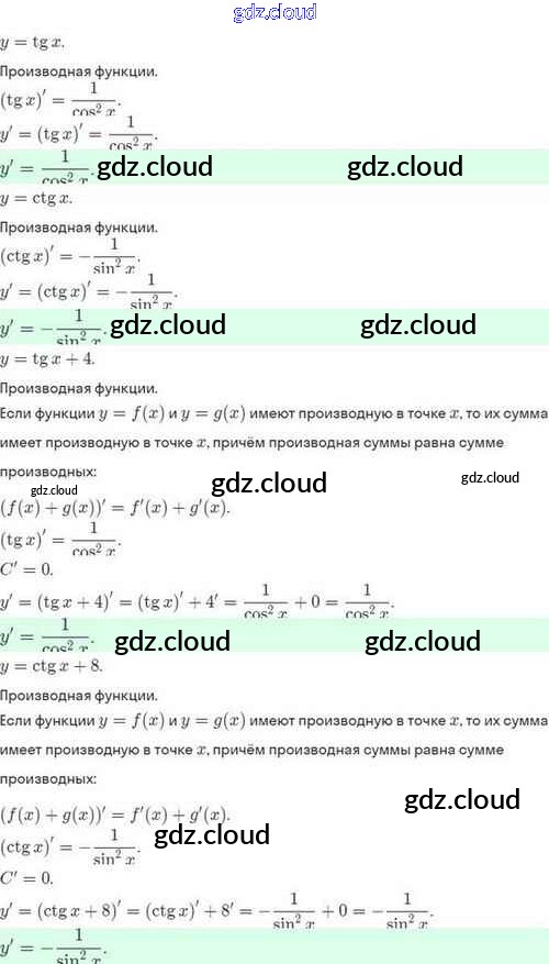 Ответы. §41. Вычисление производных по Алгебре 10 класс Задачник Мордкович Базовый и углубленный уровень Мнемозина