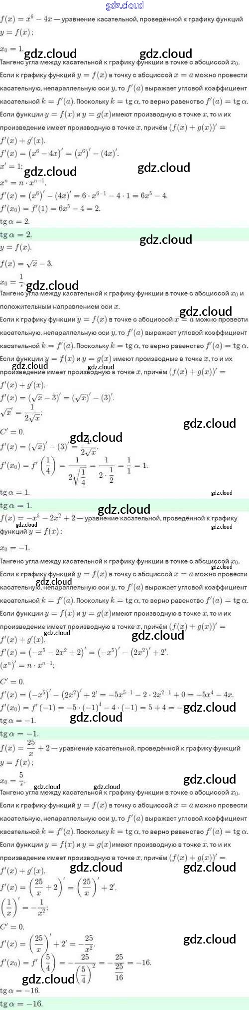 Ответы. §41. Вычисление производных по Алгебре 10 класс Задачник Мордкович Базовый и углубленный уровень Мнемозина