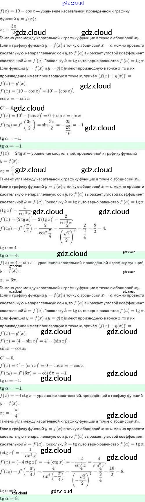 Ответы. §41. Вычисление производных по Алгебре 10 класс Задачник Мордкович Базовый и углубленный уровень Мнемозина