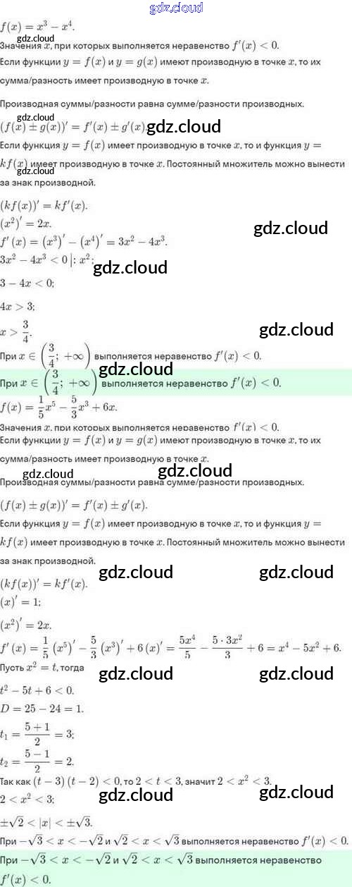 Ответы. §41. Вычисление производных по Алгебре 10 класс Задачник Мордкович Базовый и углубленный уровень Мнемозина