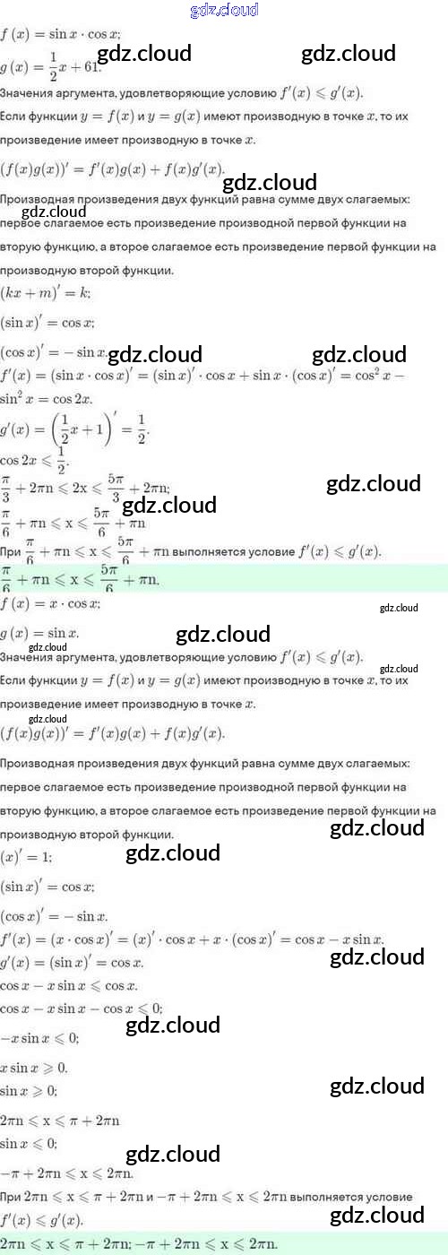 Ответы. §41. Вычисление производных по Алгебре 10 класс Задачник Мордкович Базовый и углубленный уровень Мнемозина