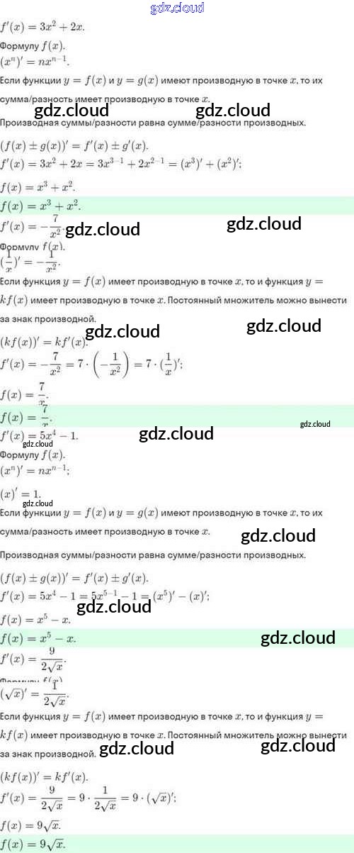 Ответы. §41. Вычисление производных по Алгебре 10 класс Задачник Мордкович Базовый и углубленный уровень Мнемозина