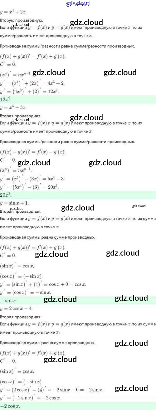 Ответы. §41. Вычисление производных по Алгебре 10 класс Задачник Мордкович Базовый и углубленный уровень Мнемозина