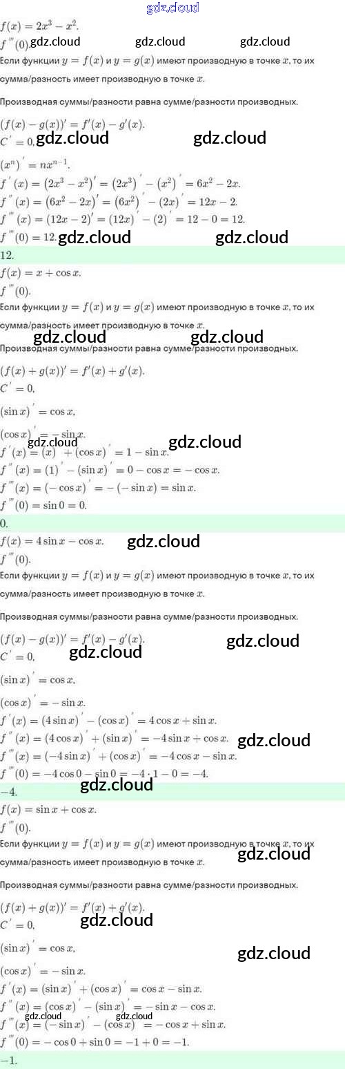 Ответы. §41. Вычисление производных по Алгебре 10 класс Задачник Мордкович Базовый и углубленный уровень Мнемозина
