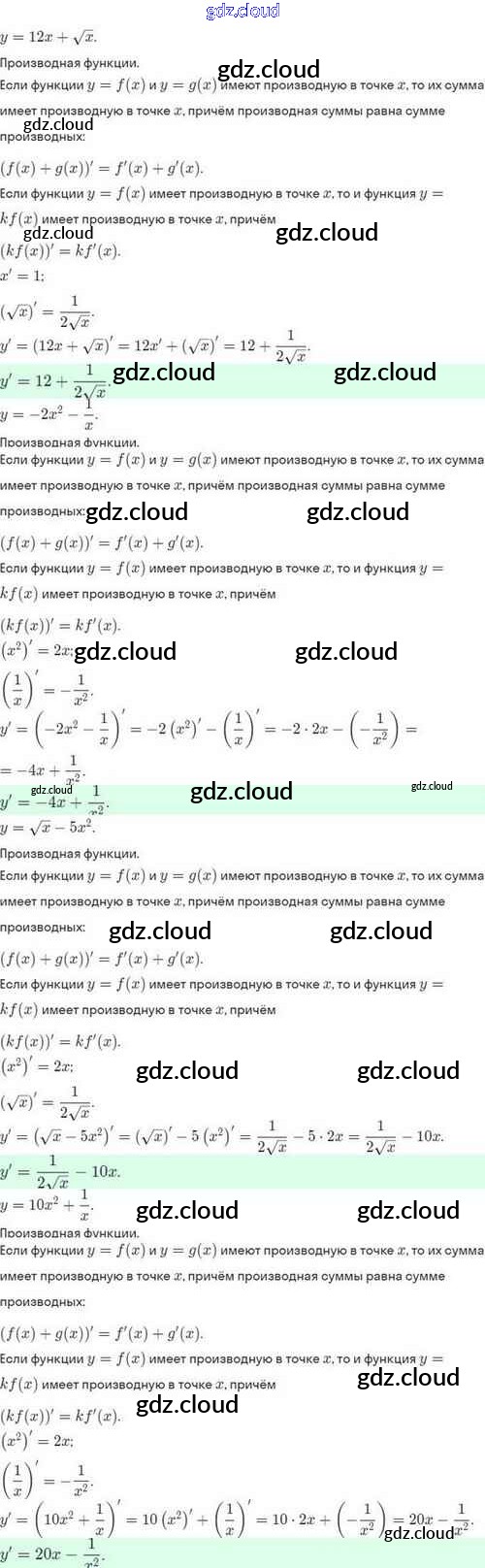 Ответы. §41. Вычисление производных по Алгебре 10 класс Задачник Мордкович Базовый и углубленный уровень Мнемозина