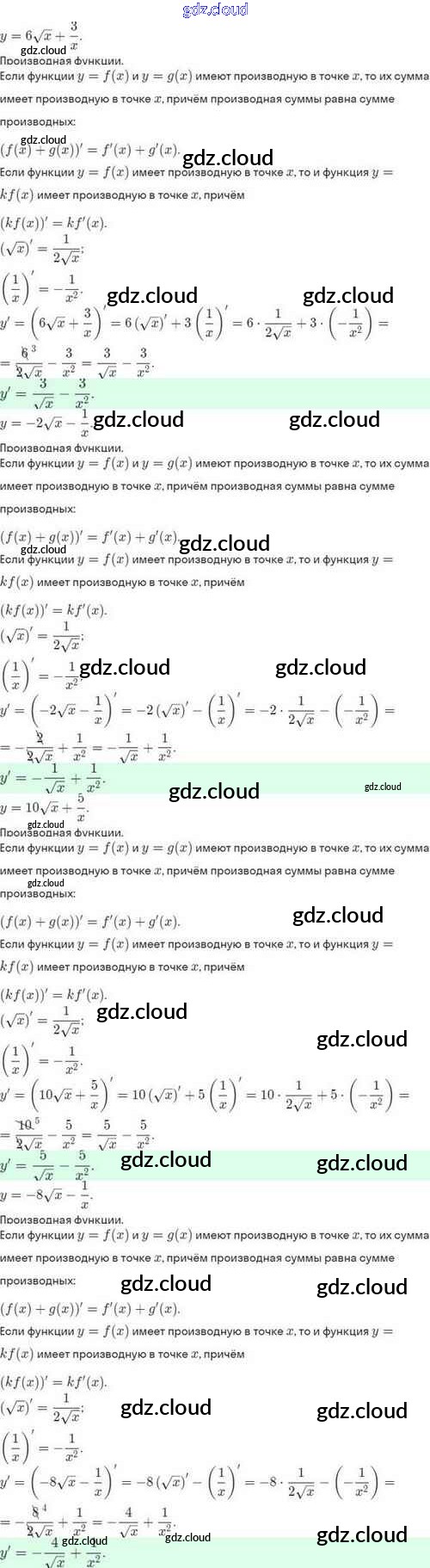 Ответы. §41. Вычисление производных по Алгебре 10 класс Задачник Мордкович Базовый и углубленный уровень Мнемозина