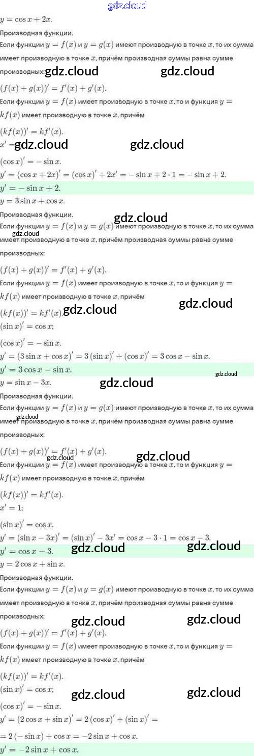 Ответы. §41. Вычисление производных по Алгебре 10 класс Задачник Мордкович Базовый и углубленный уровень Мнемозина
