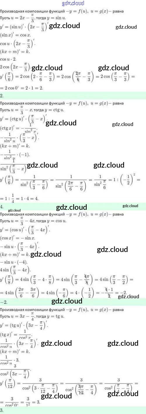 Ответы. §42. Дифференцирование сложной функции. Дифференцирование обратной функции по Алгебре 10 класс Задачник Мордкович Базовый и углубленный уровень Мнемозина