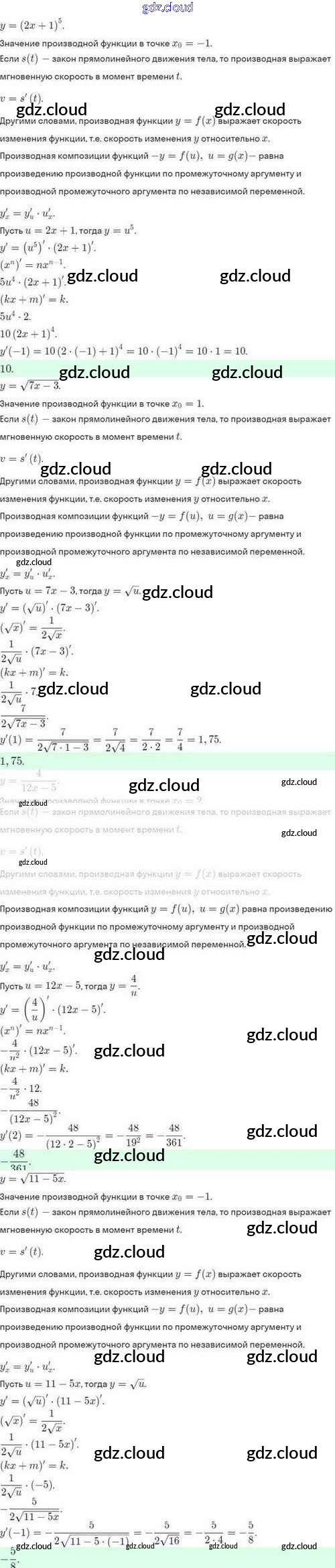 Ответы. §42. Дифференцирование сложной функции. Дифференцирование обратной функции по Алгебре 10 класс Задачник Мордкович Базовый и углубленный уровень Мнемозина