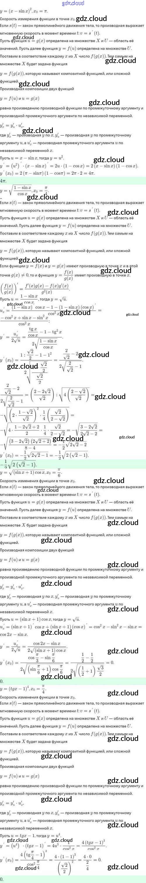 Ответы. §42. Дифференцирование сложной функции. Дифференцирование обратной функции по Алгебре 10 класс Задачник Мордкович Базовый и углубленный уровень Мнемозина