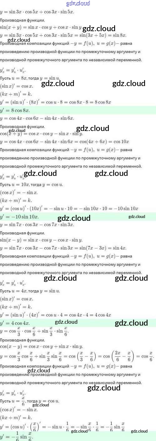 Ответы. §42. Дифференцирование сложной функции. Дифференцирование обратной функции по Алгебре 10 класс Задачник Мордкович Базовый и углубленный уровень Мнемозина