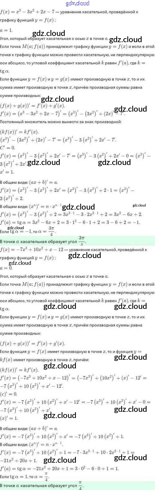 Ответы. §43. Уравнение касательной к графику функции по Алгебре 10 класс Задачник Мордкович Базовый и углубленный уровень Мнемозина