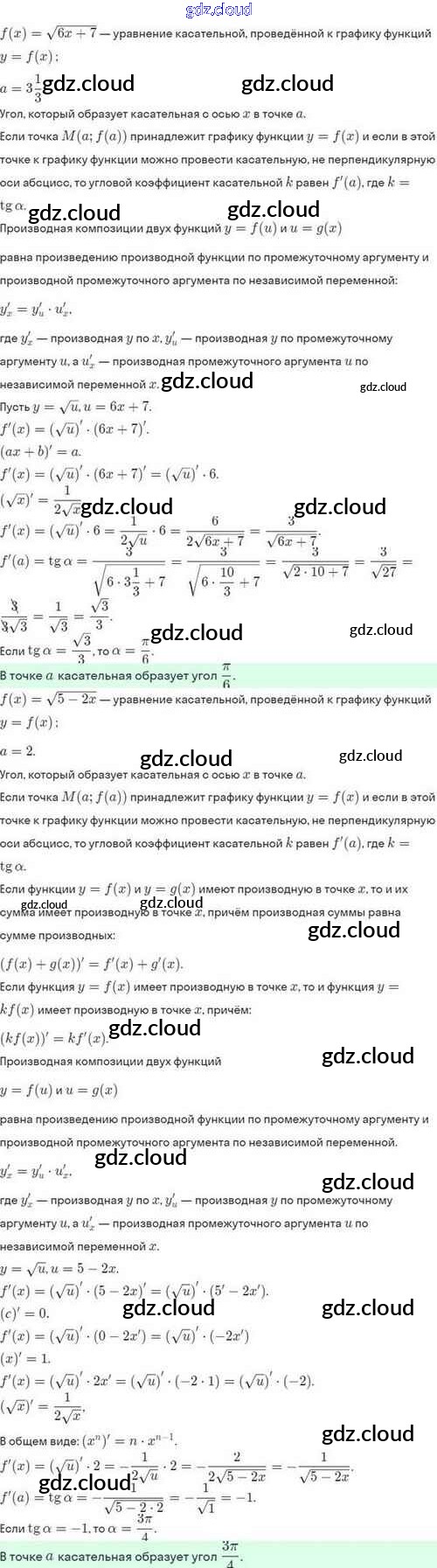 Ответы. §43. Уравнение касательной к графику функции по Алгебре 10 класс Задачник Мордкович Базовый и углубленный уровень Мнемозина