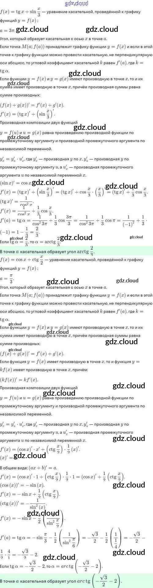 Ответы. §43. Уравнение касательной к графику функции по Алгебре 10 класс Задачник Мордкович Базовый и углубленный уровень Мнемозина