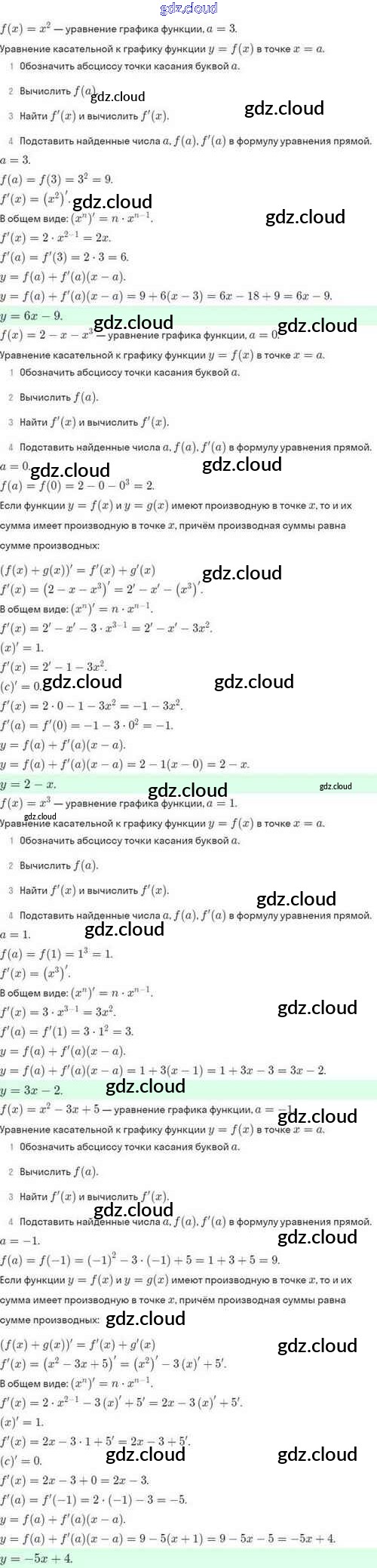 Ответы. §43. Уравнение касательной к графику функции по Алгебре 10 класс Задачник Мордкович Базовый и углубленный уровень Мнемозина