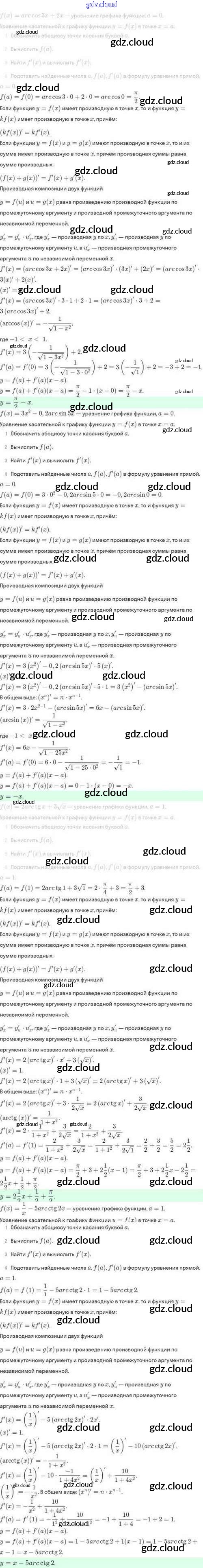 Ответы. §43. Уравнение касательной к графику функции по Алгебре 10 класс Задачник Мордкович Базовый и углубленный уровень Мнемозина