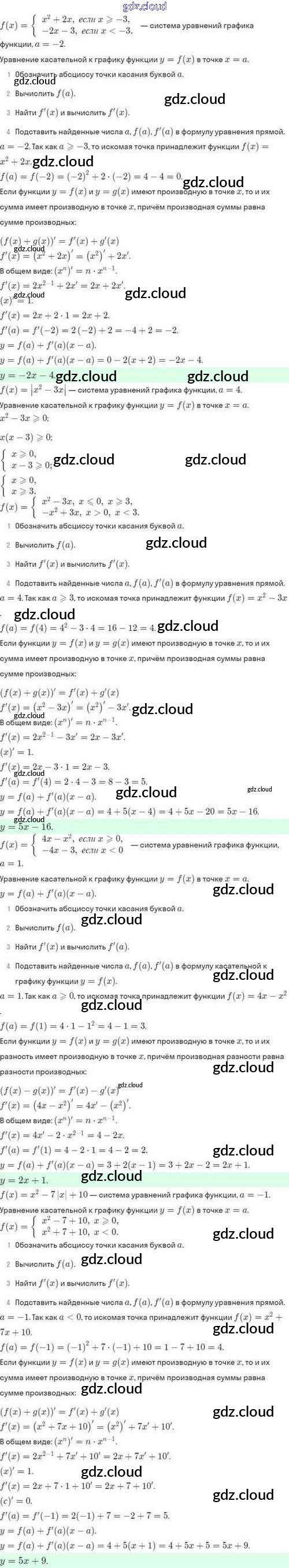 Ответы. §43. Уравнение касательной к графику функции по Алгебре 10 класс Задачник Мордкович Базовый и углубленный уровень Мнемозина