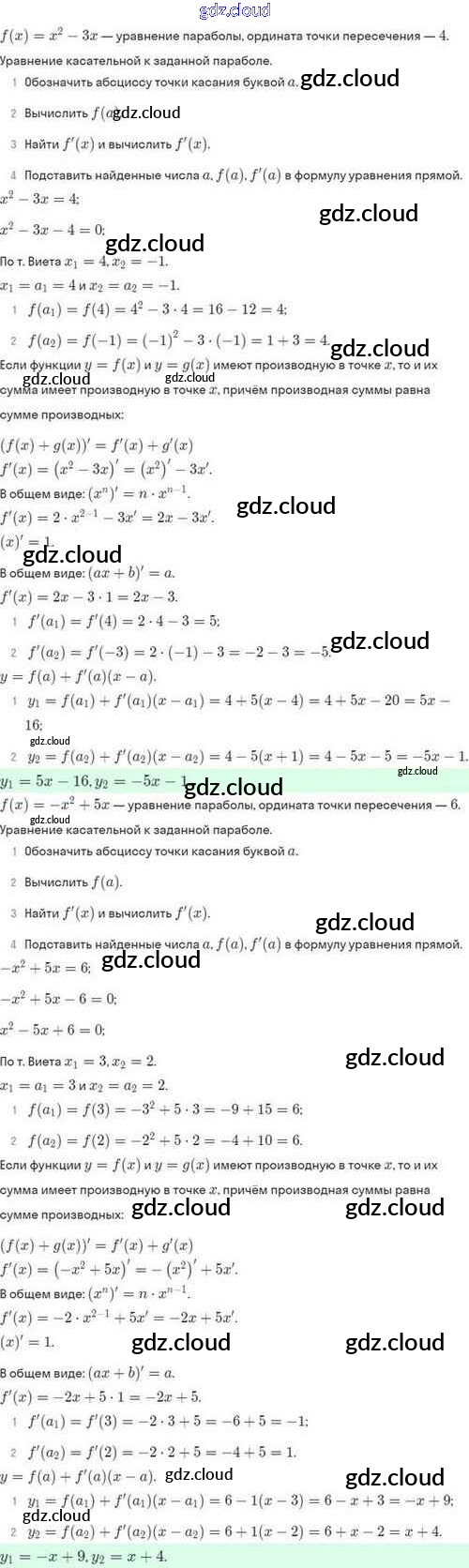Ответы. §43. Уравнение касательной к графику функции по Алгебре 10 класс Задачник Мордкович Базовый и углубленный уровень Мнемозина