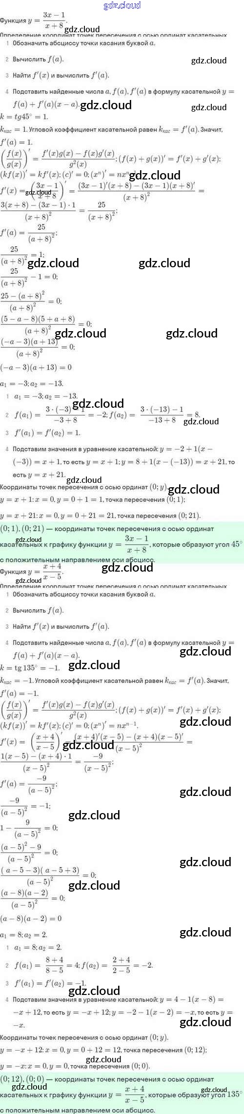 Ответы. §43. Уравнение касательной к графику функции по Алгебре 10 класс Задачник Мордкович Базовый и углубленный уровень Мнемозина