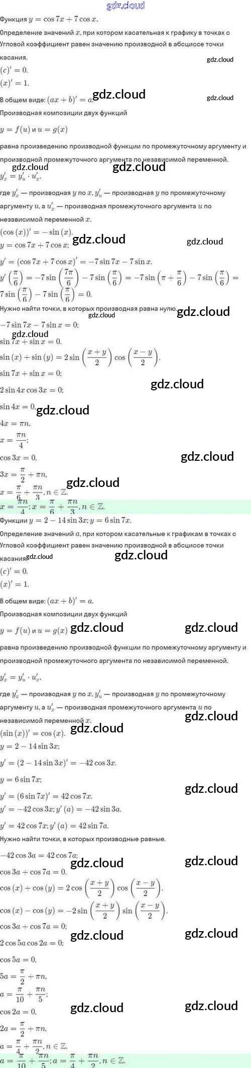 Ответы. §43. Уравнение касательной к графику функции по Алгебре 10 класс Задачник Мордкович Базовый и углубленный уровень Мнемозина