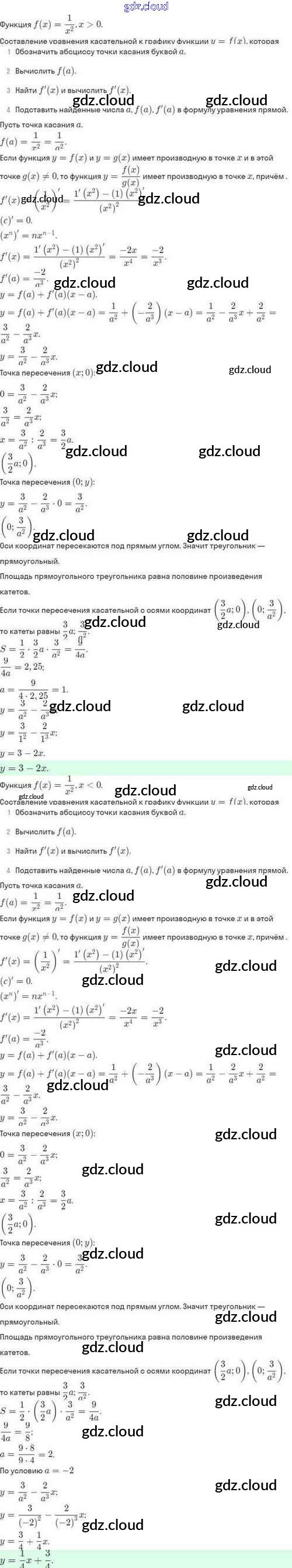 Ответы. §43. Уравнение касательной к графику функции по Алгебре 10 класс Задачник Мордкович Базовый и углубленный уровень Мнемозина