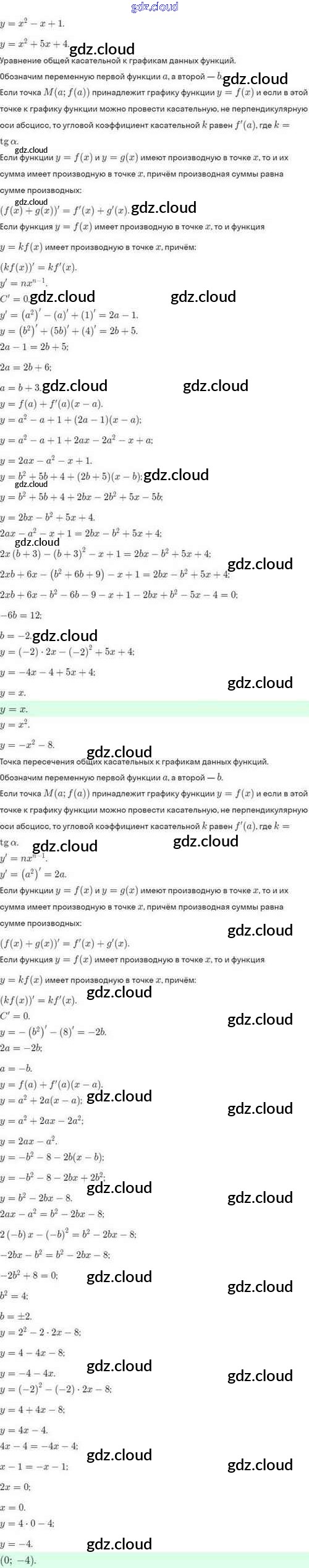Ответы. §43. Уравнение касательной к графику функции по Алгебре 10 класс Задачник Мордкович Базовый и углубленный уровень Мнемозина