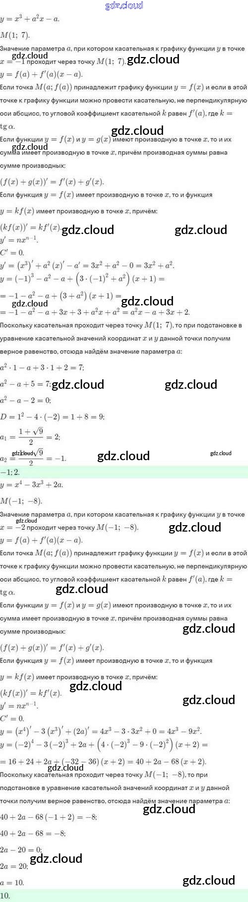 Ответы. §43. Уравнение касательной к графику функции по Алгебре 10 класс Задачник Мордкович Базовый и углубленный уровень Мнемозина
