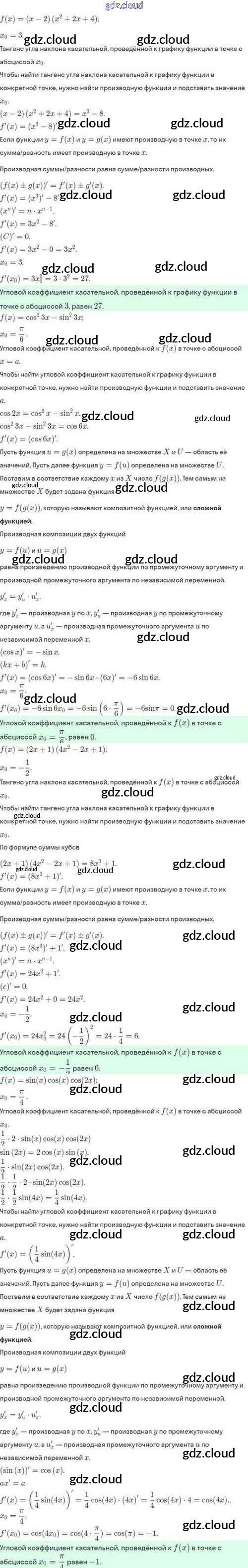 Ответы. §43. Уравнение касательной к графику функции по Алгебре 10 класс Задачник Мордкович Базовый и углубленный уровень Мнемозина