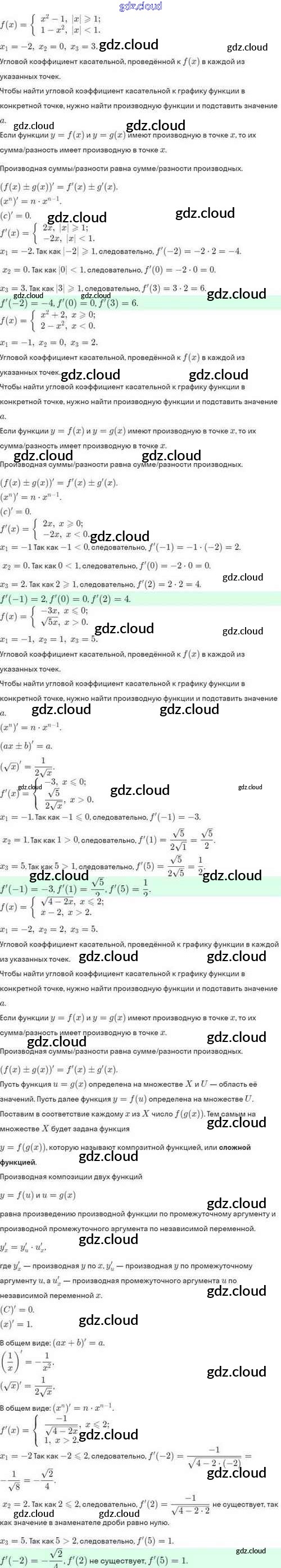 Ответы. §43. Уравнение касательной к графику функции по Алгебре 10 класс Задачник Мордкович Базовый и углубленный уровень Мнемозина