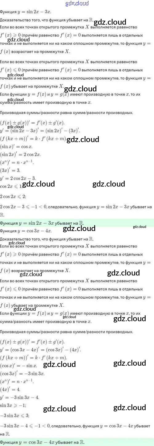 Ответы. §44. Применение производной для исследования функций на монотонность и экстремумы по Алгебре 10 класс Задачник Мордкович Базовый и углубленный уровень Мнемозина