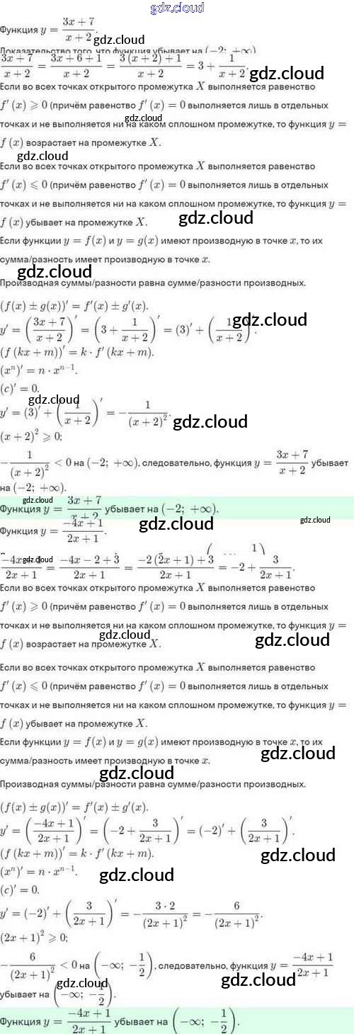 Ответы. §44. Применение производной для исследования функций на монотонность и экстремумы по Алгебре 10 класс Задачник Мордкович Базовый и углубленный уровень Мнемозина