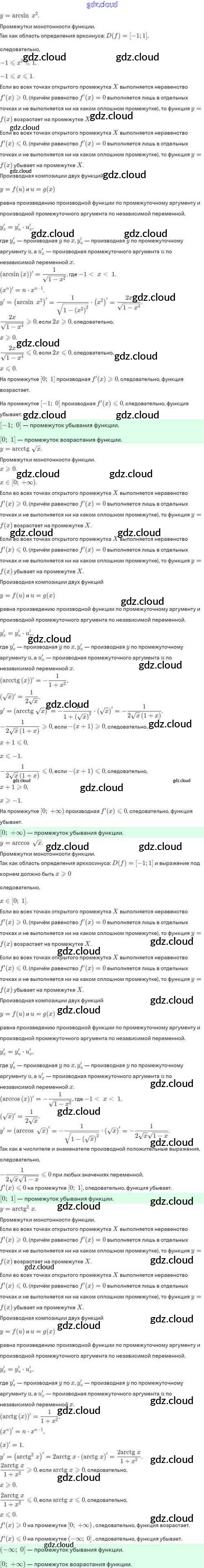 Ответы. §44. Применение производной для исследования функций на монотонность и экстремумы по Алгебре 10 класс Задачник Мордкович Базовый и углубленный уровень Мнемозина