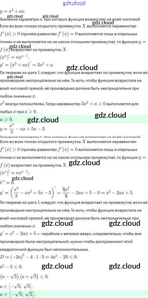 Ответы. §44. Применение производной для исследования функций на монотонность и экстремумы по Алгебре 10 класс Задачник Мордкович Базовый и углубленный уровень Мнемозина